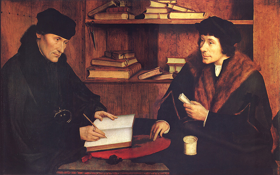 Attraverso il montaggio digitale dell’immagine, due differenti ritratti del pittore fiammingo Metsijs vengono uniti tra loro,